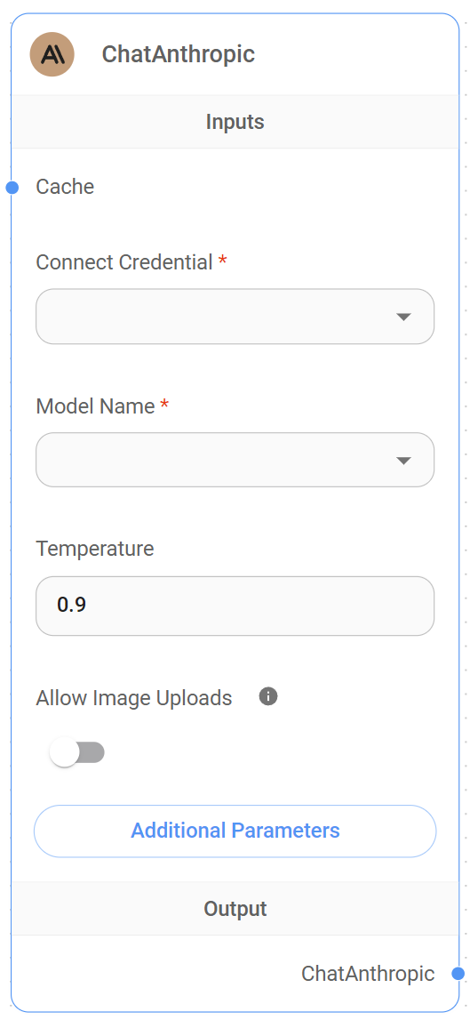 <figure><img src="https://662370747-files.gitbook.io/~/files/v0/b/gitbook-x-prod.appspot.com/o/spaces%2F3VoWwSsyrEg0DEvIIjv9%2Fuploads%2Fgit-blob-53140bf67f525d3c4e8aeeac3b23ab5f7368301a%2Fimage%20(43).png?alt=media" alt="" width="265"><figcaption><p>ChatAnthropic Node</p></figcaption></figure>
