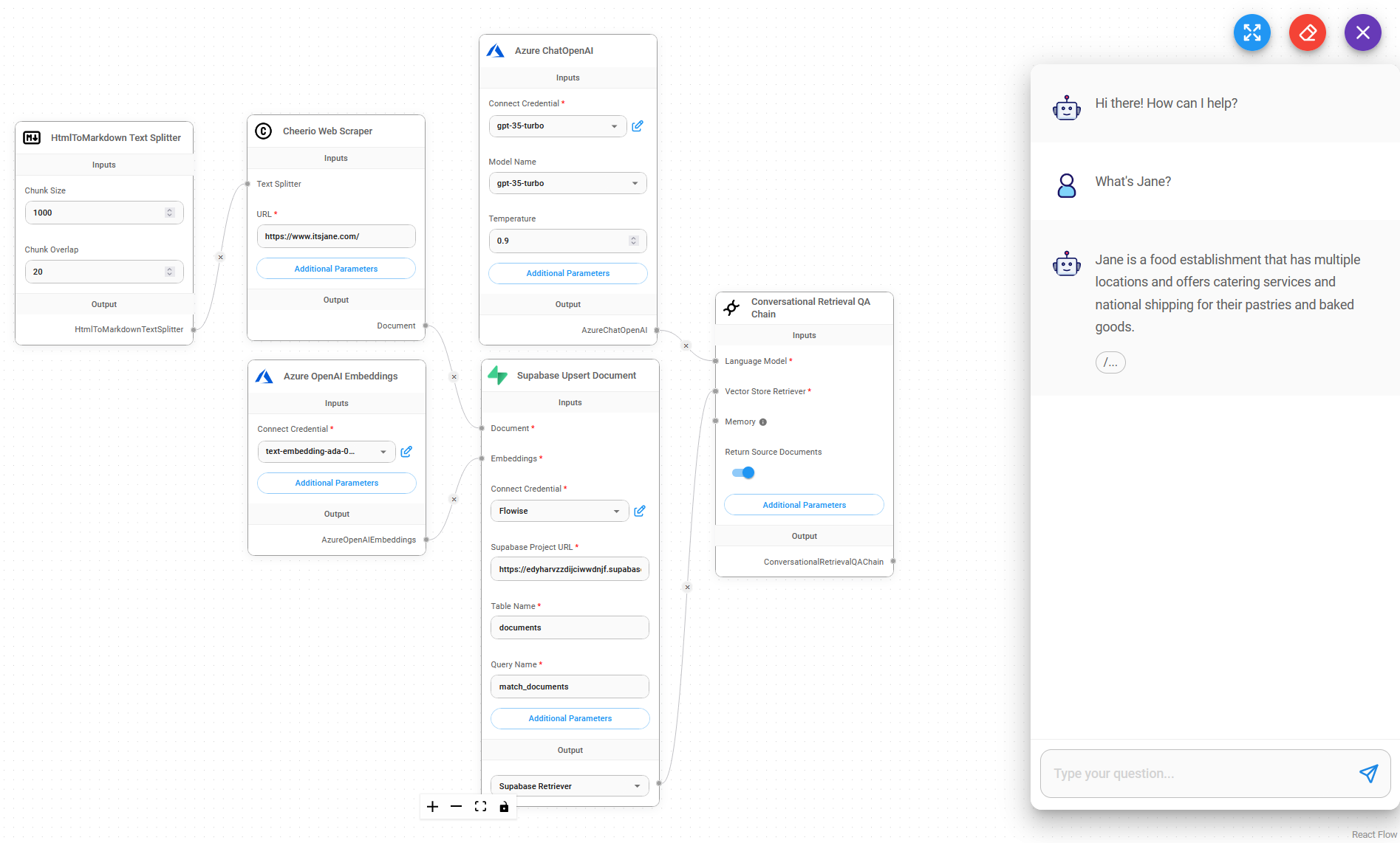 1. **Embeddings** > drag **Azure OpenAI Embeddings** node