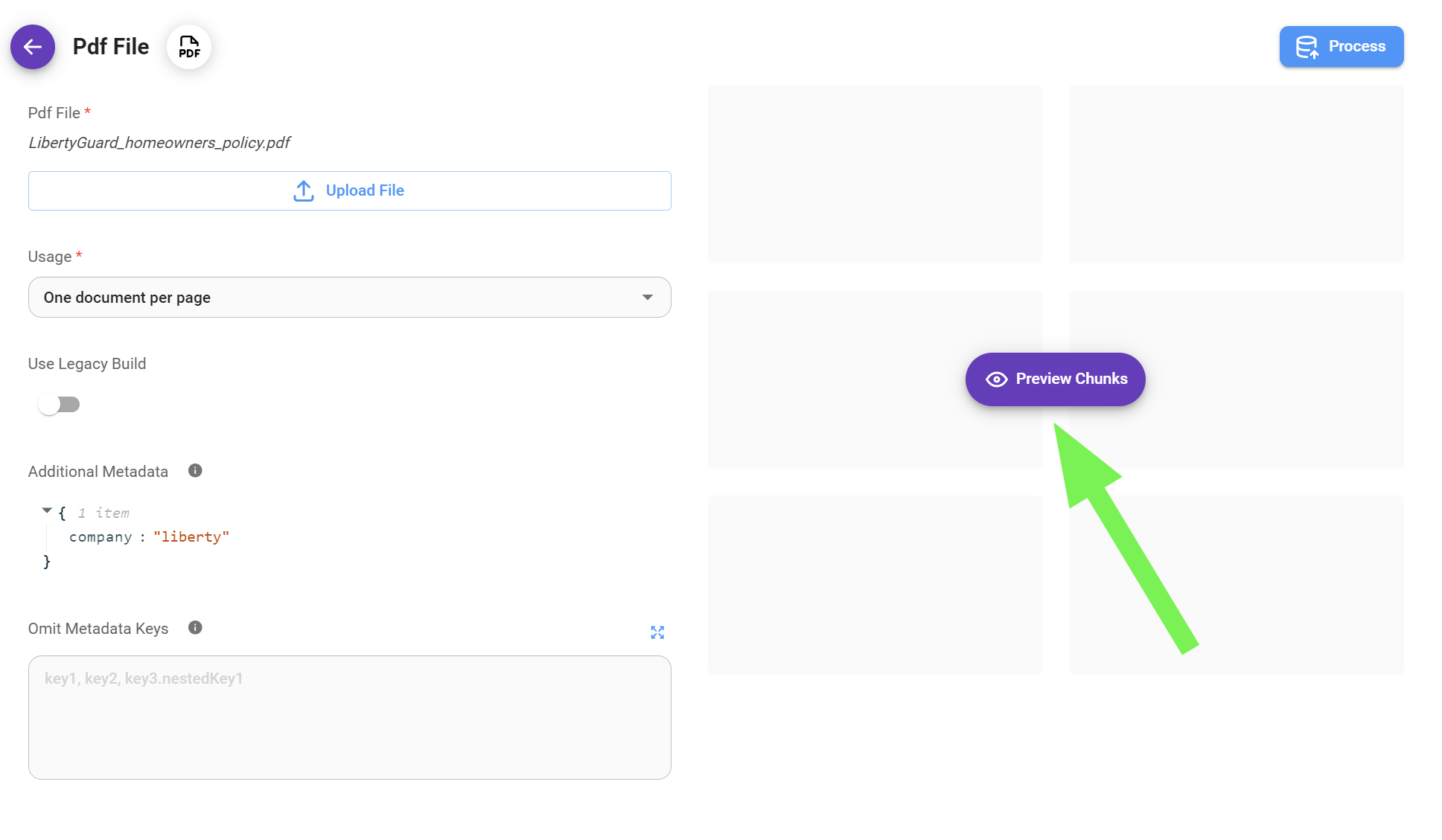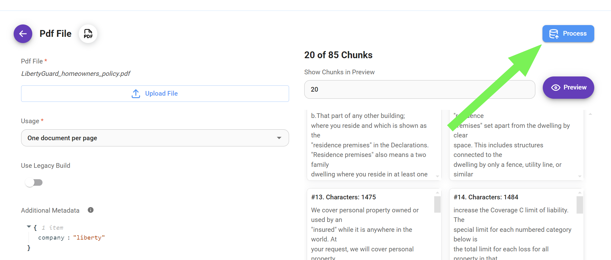 * Once you are satisfied with the chunking process, it's time to process your data.